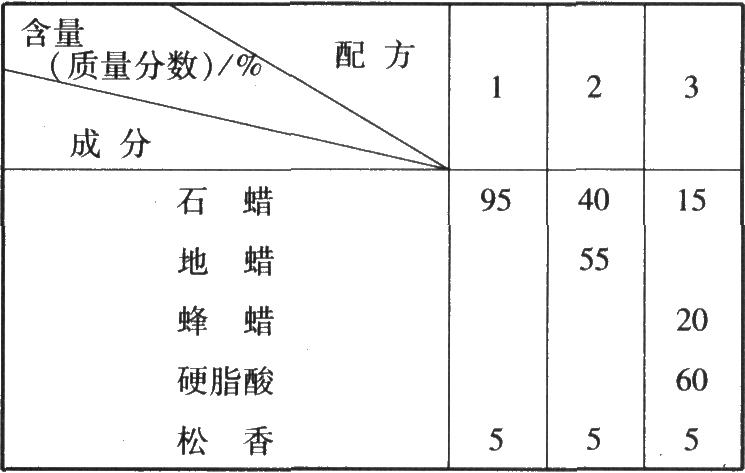 (1)涂蠟制劑。用蠟制劑絕緣的特點(diǎn)是絕緣層與零件基體的粘結(jié)性能好,端邊在使用過程中不會(huì)翹起,適用于絕緣端邊尺寸公差要求高的零件。此外,蠟制劑可回收利用。典型的蠟制劑配方見表2—4—9。