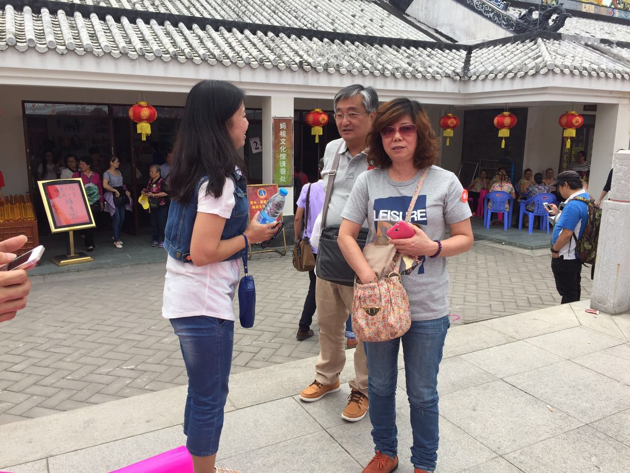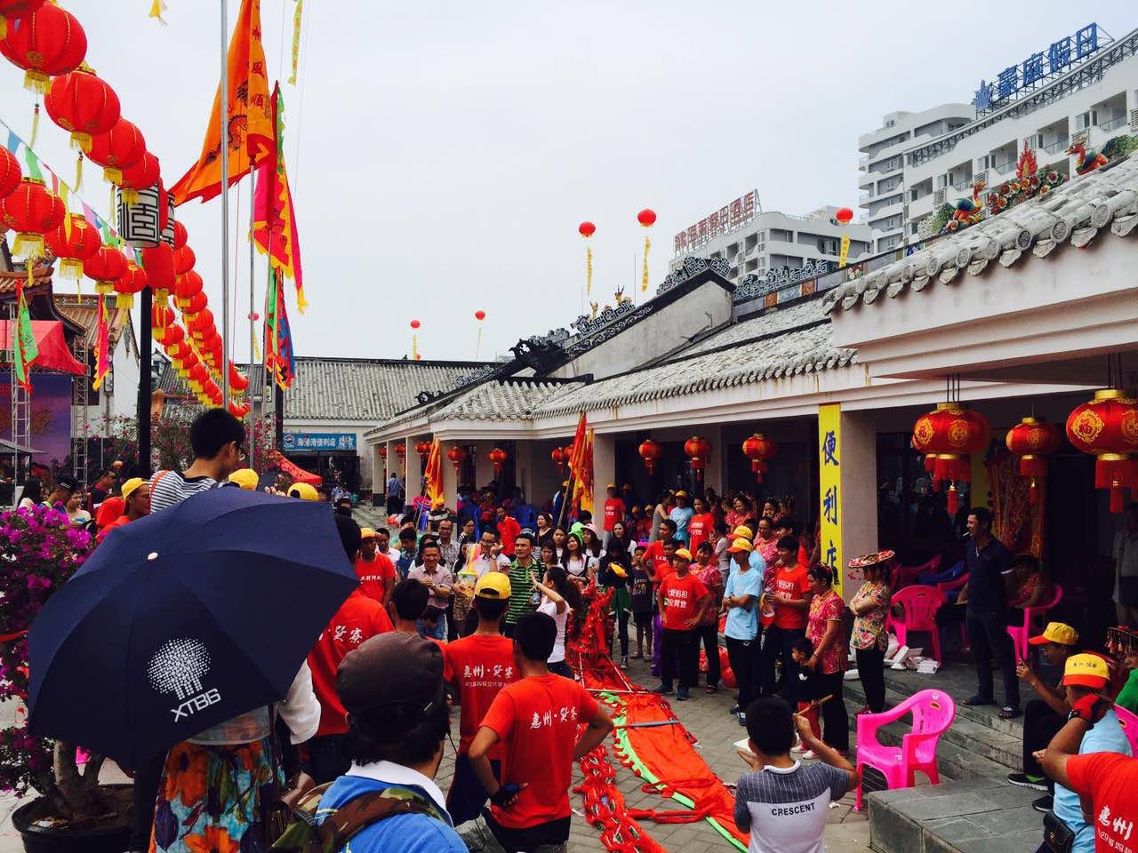 在經(jīng)過了四小時的車程后,于中午時分到達了素有中國的馬爾代夫之稱的惠東巽寮灣。一行人一下車便開始了第一項拓展挑戰(zhàn)——人員分成三組,分別找到天后宮的正門及概念銷售手中的礦泉水,且銷售出去后水還在手中。巽寮灣的景點之一的天后宮在這天正好遇上一年一度的媽祖誕辰,各地的旅游團和朝拜人士都從五湖四海聚擁而至,人山人海的場面相當熱鬧。