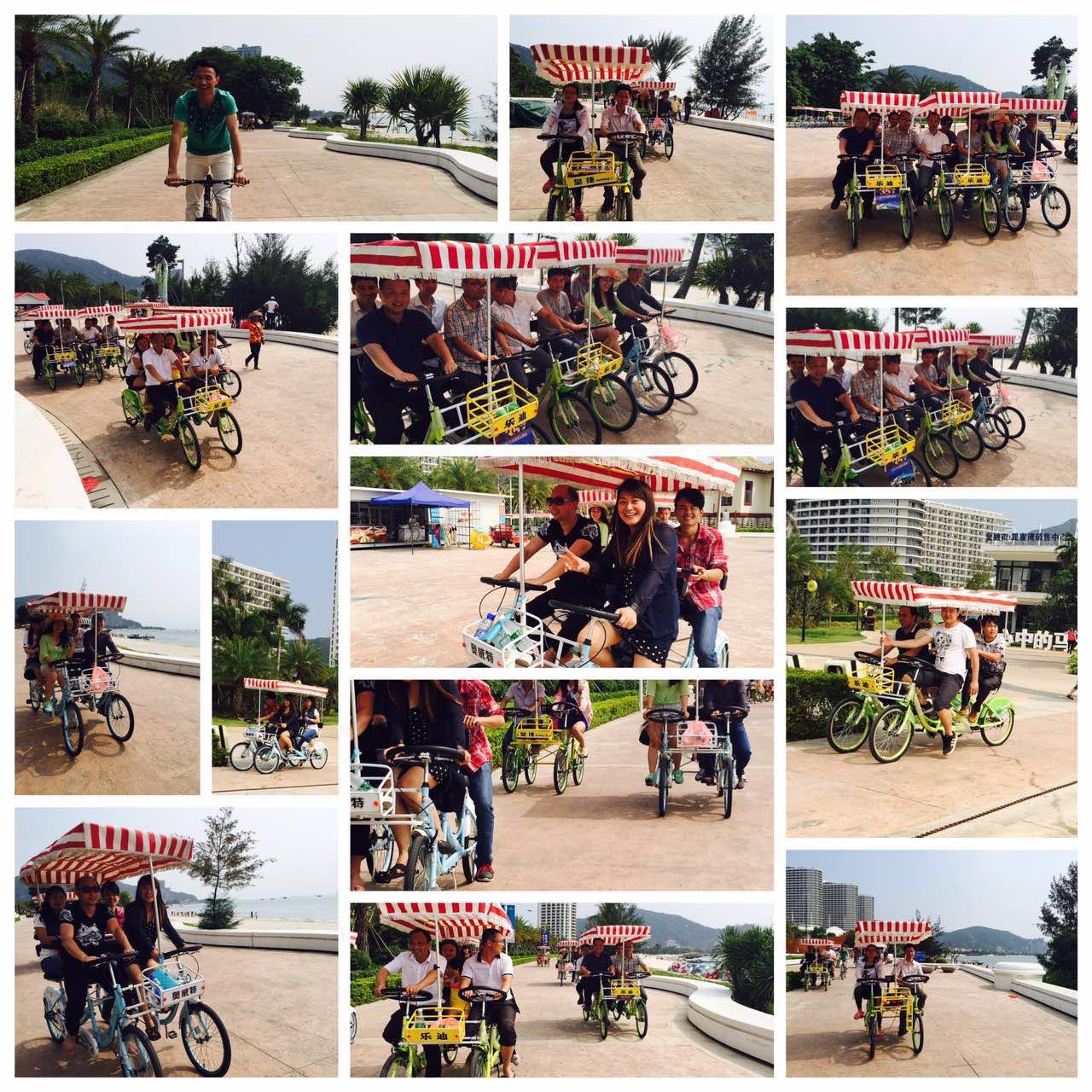 第二天一早大家便來到了素有中國式馬爾代夫之稱巽寮灣海灘邊,欣賞白沙灘,綠藍分明的海水,體驗了慢船在海中捕魚及快艇海中速度般飛越的感覺,大家都意猶未盡不舍上岸……拓展公司見我們都不愿意離開,簡單的午餐過后,組織了大家集體騎自行車環(huán)海觀光,一邊悠閑地踩著自行車,一邊吃著冰激淋,一邊吹著海風和同事們嘻鬧,讓我們大家都開懷大笑!