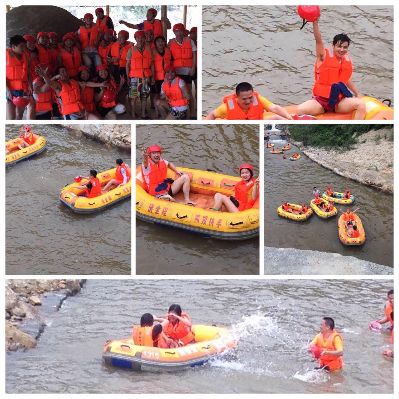 中午大家在一起享受了一番當?shù)孛朗持螅?qū)車來到了巽寮灣龍騰峽漂流,開始了我們的第二項挑戰(zhàn)。盡情享受漂流給心靈帶來歡愉與刺激的同時,享受大自然的鬼斧神工之妙!平時一向溫和的李總和林總,也童真了回,孩子氣地直接從漂流艇上跳入水中,和大伙一起玩起了潑水大戰(zhàn),更加拉進了彼此間的距離感。