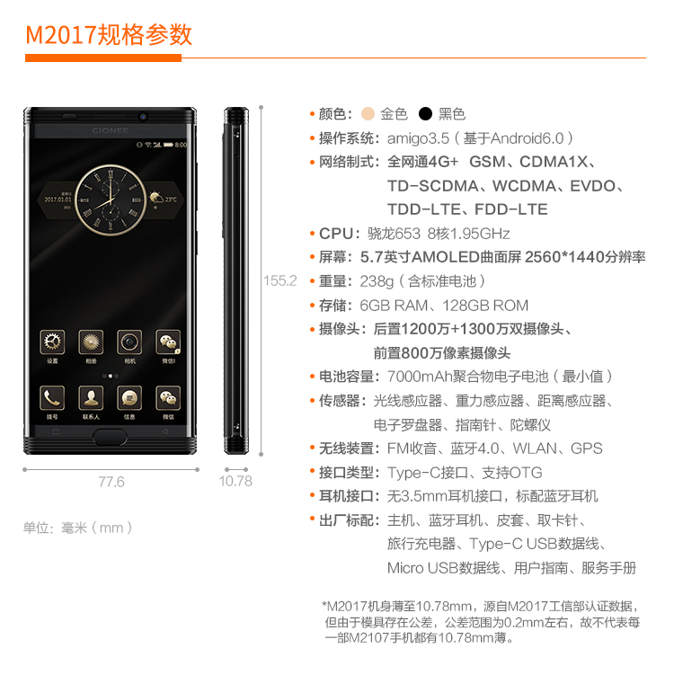金立M2017商務奢華超級續航手機